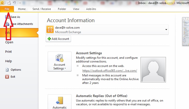 In Outlook, File