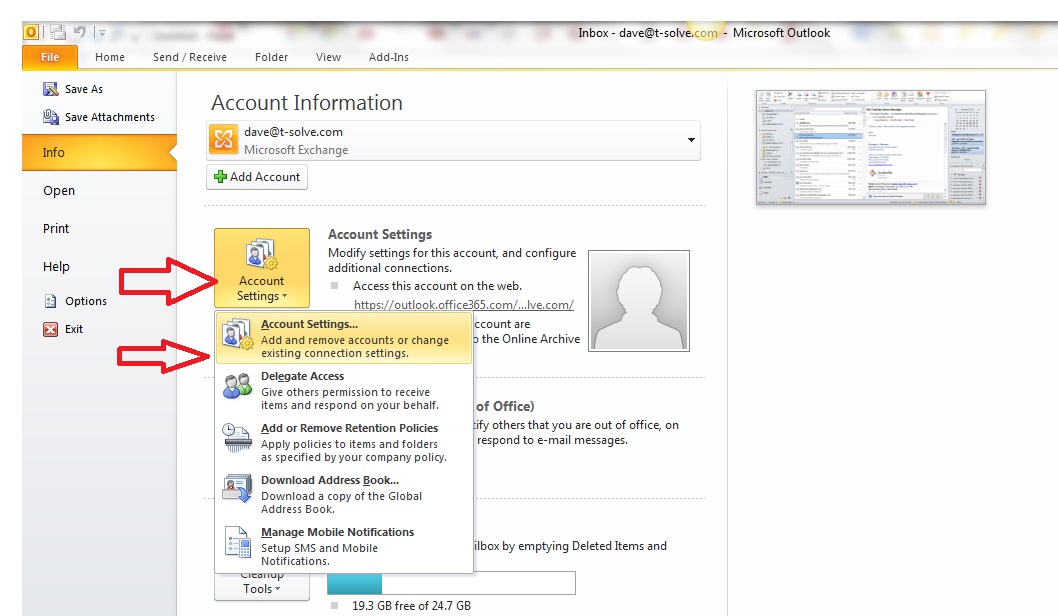 Click Account Settings and then Account Settings in the drop down window that appears.