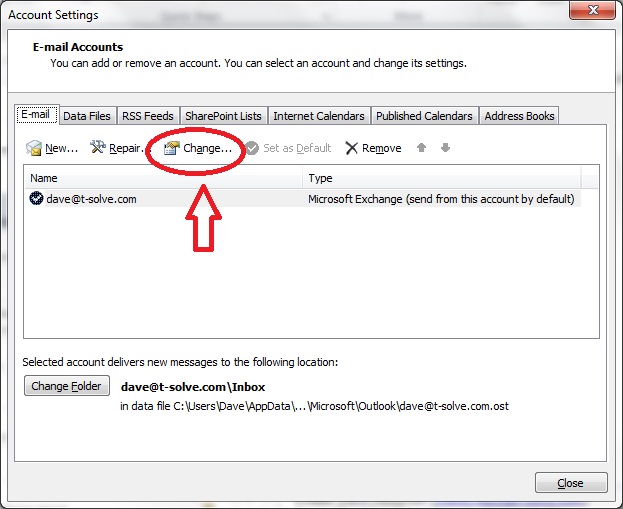 Click Change (if you have more than one account listed, please make sure to select your Exchange account).